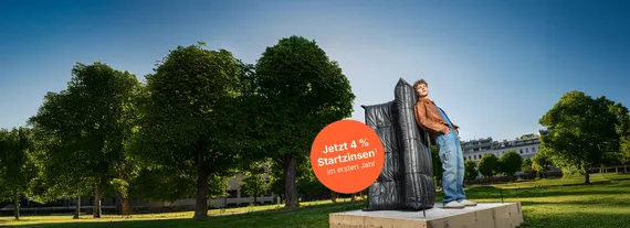 ¹ 4 % Zinsen für die ersten 12 Monate für Einzahlungen bis zur Vertragssumme (monatlicher Sparbetrag x 240). Beim s Flex-Bausparen danach variable Zinsen zwischen 0,10 % und 4,25 % jährlich gemäß Indikator. Effektiver Jahreszinssatz vor KESt zwischen 0,45 % und 5,10 % jährlich, bei Einmalzahlung zwischen 0,69 % und 4,45 %, wenn mindestens 7.200 Euro im ersten Monat eingezahlt werden.